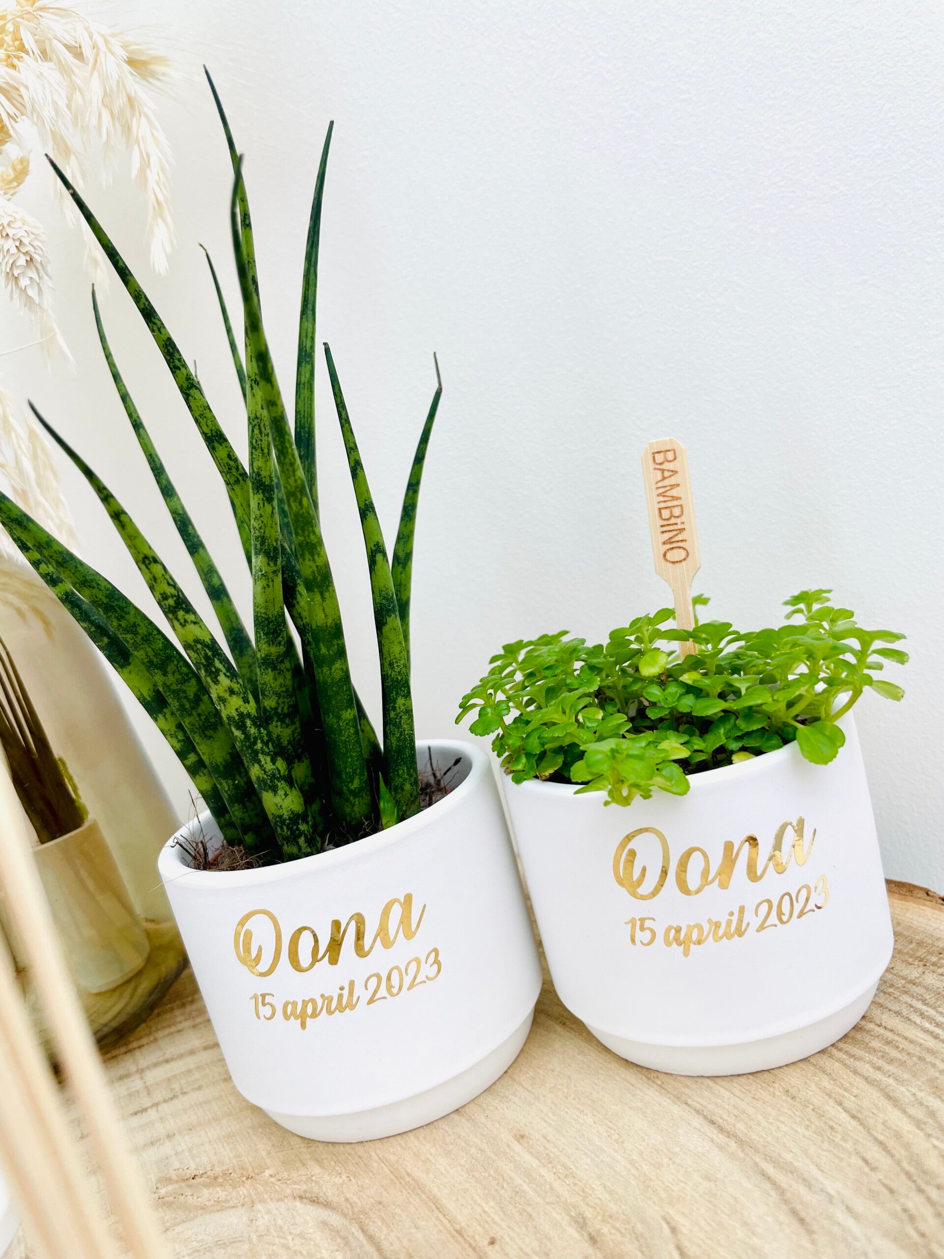 De bloempotjes worden standaard geleverd zonder plantje.