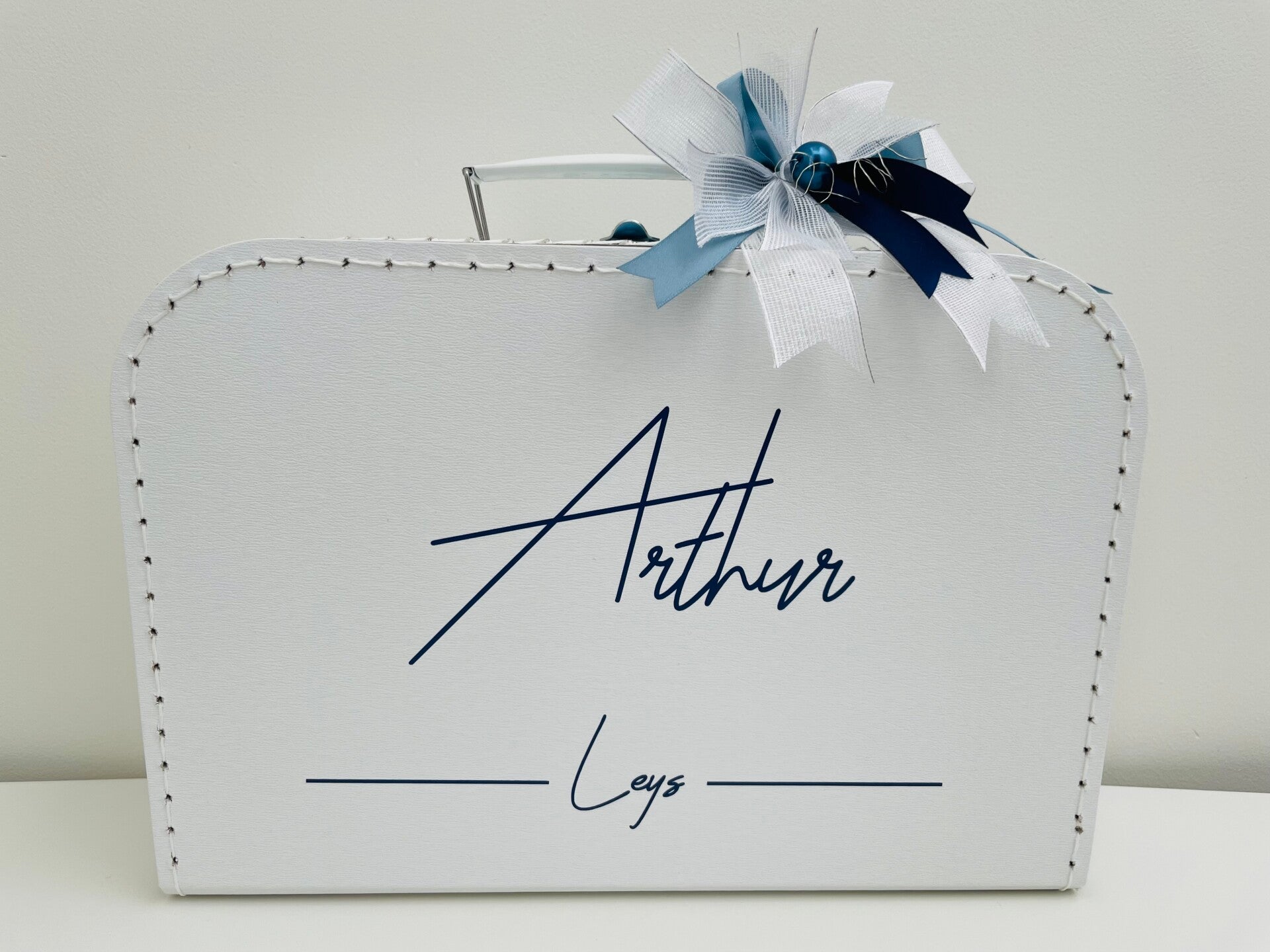 Mail het geboortekaartje naar info@designedbyliesl.be voor een uniek koffertje!