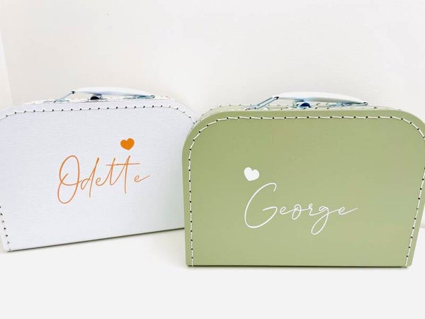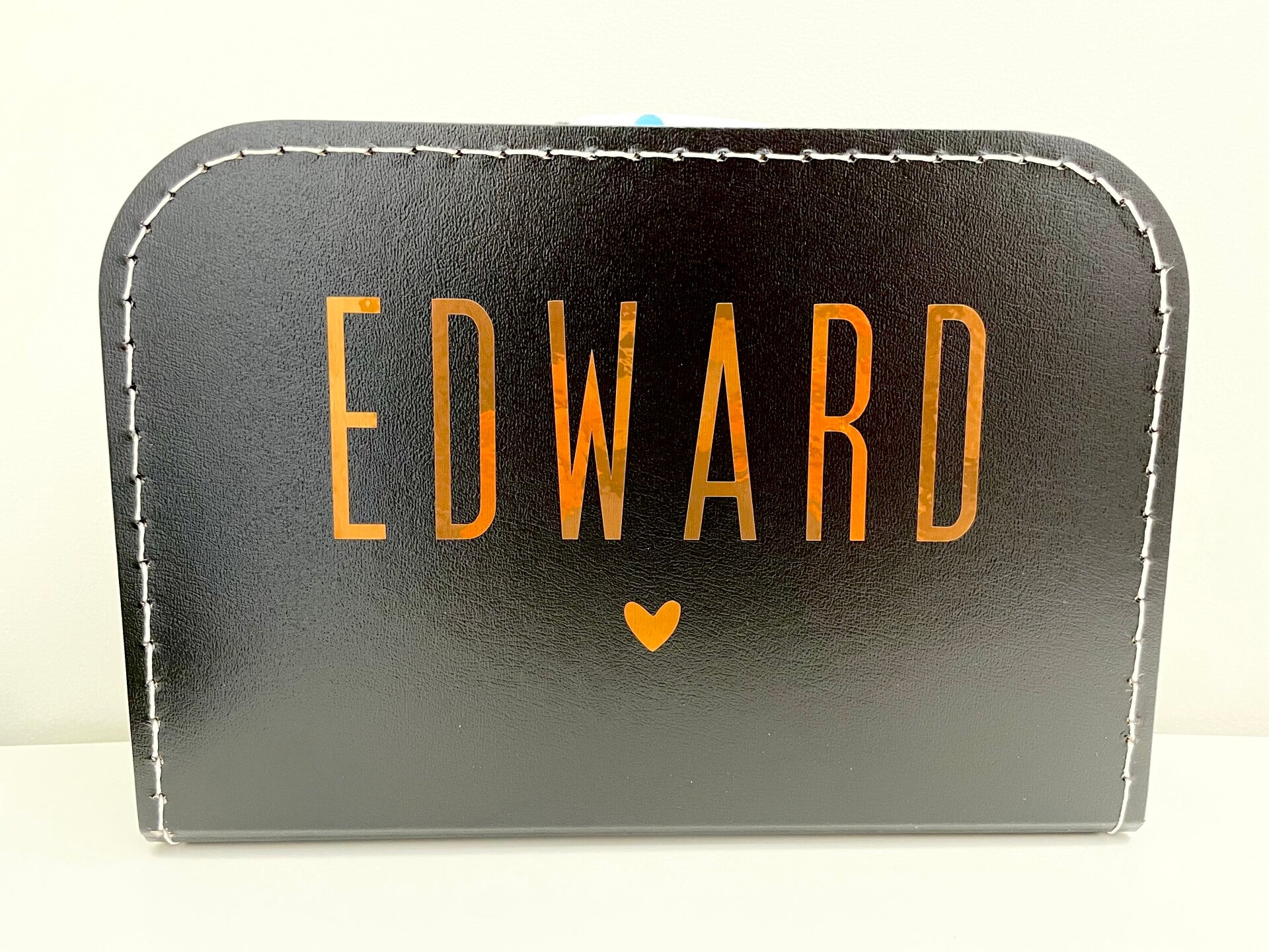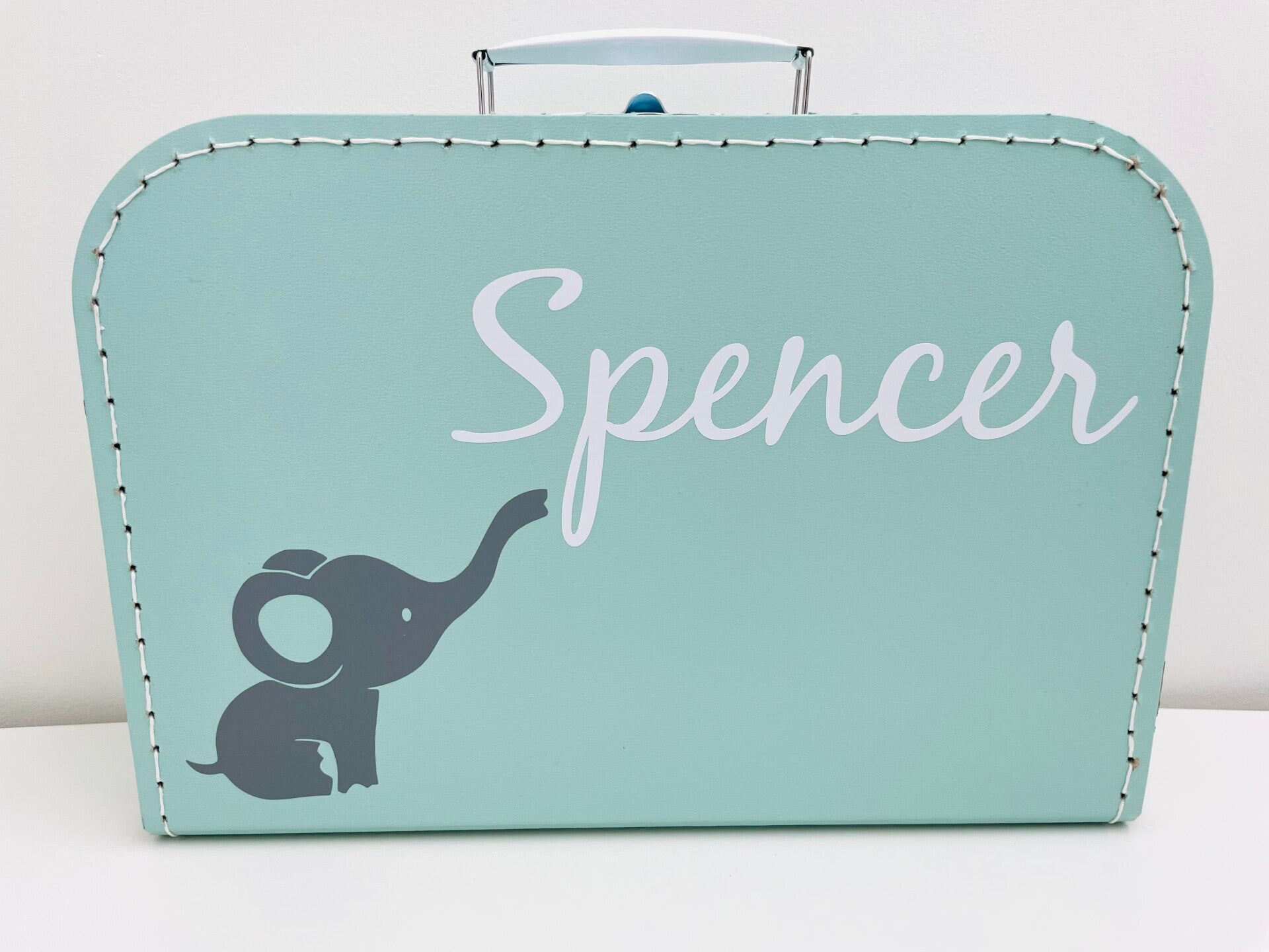 Leuk koffertje om allerlei spulletjes in te doen. Het ontwerp naar wens maakt het koffertje tot een uniek geboorte- of verjaardagscadeau.